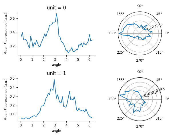 a behavioral feature (i.e. head-direction), We can compute tuning curves, i.e. the fluorescence of neurons as a function of head-direction. We want to know how the fluorescence of each neuron changes as a function of the head-direction of the animal. We can use the same function as before :